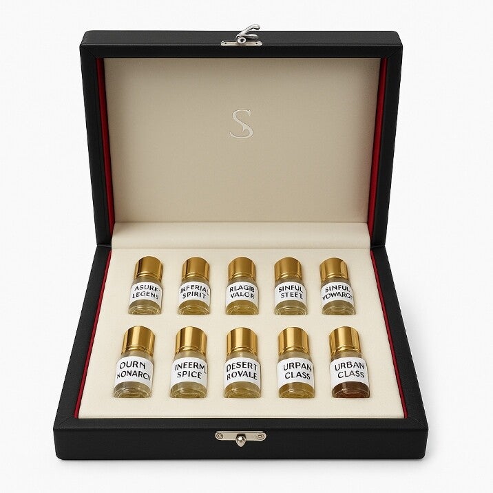 An ittar box with 10 different 3ml bottles is essentially a curated set of traditional perfume oils, each with its own unique fragrance profile. Since ittar (also spelled attar) is a natural perfume oil made from botanical sources like flowers, herbs, spices, or woods, and contains no alcohol, it’s highly valued for its purity and long-lasting scent.